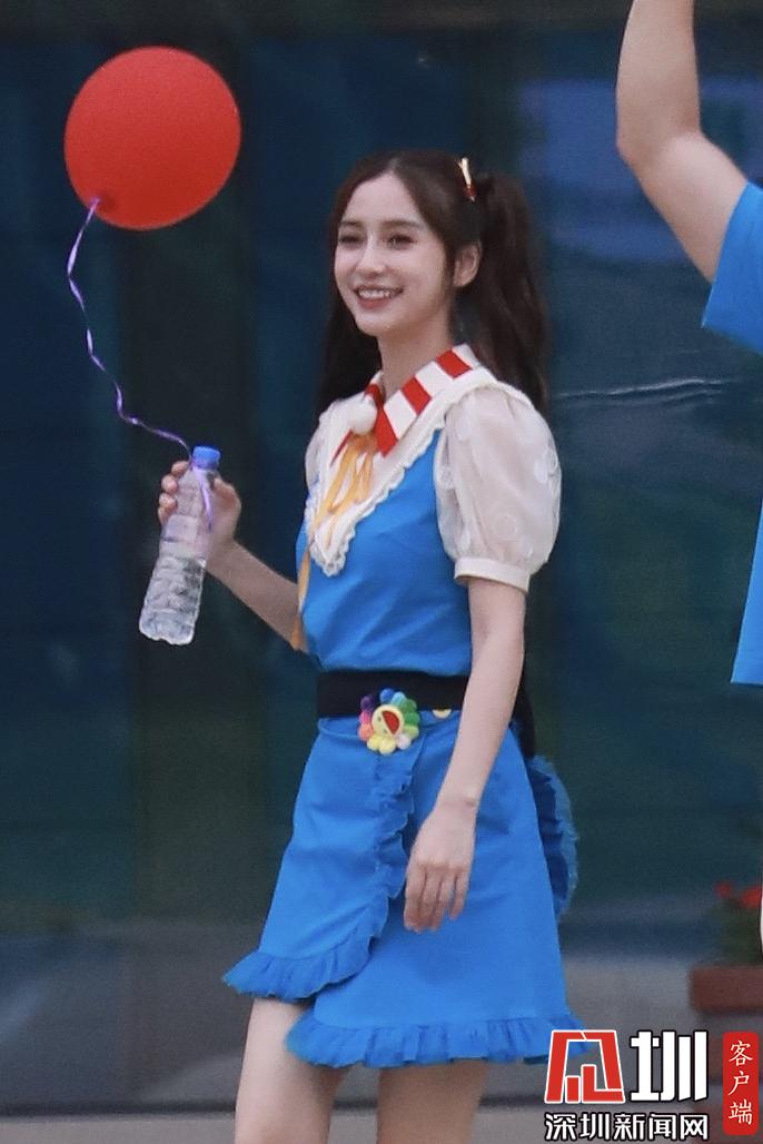 杨颖(angelababy)穿蓝色背带裙扎双马尾清新可爱