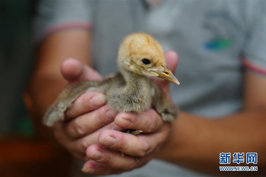 6月29日拍摄的蓑羽鹤宝宝。新华社记者周密摄