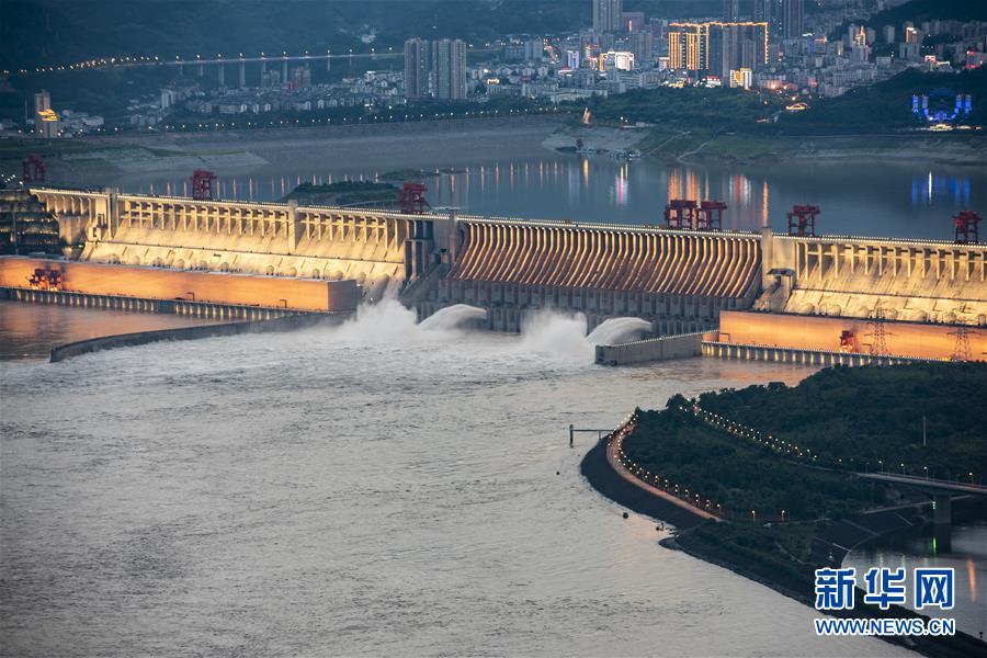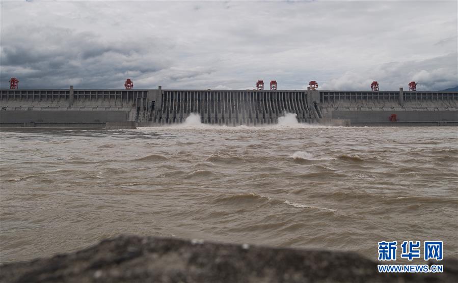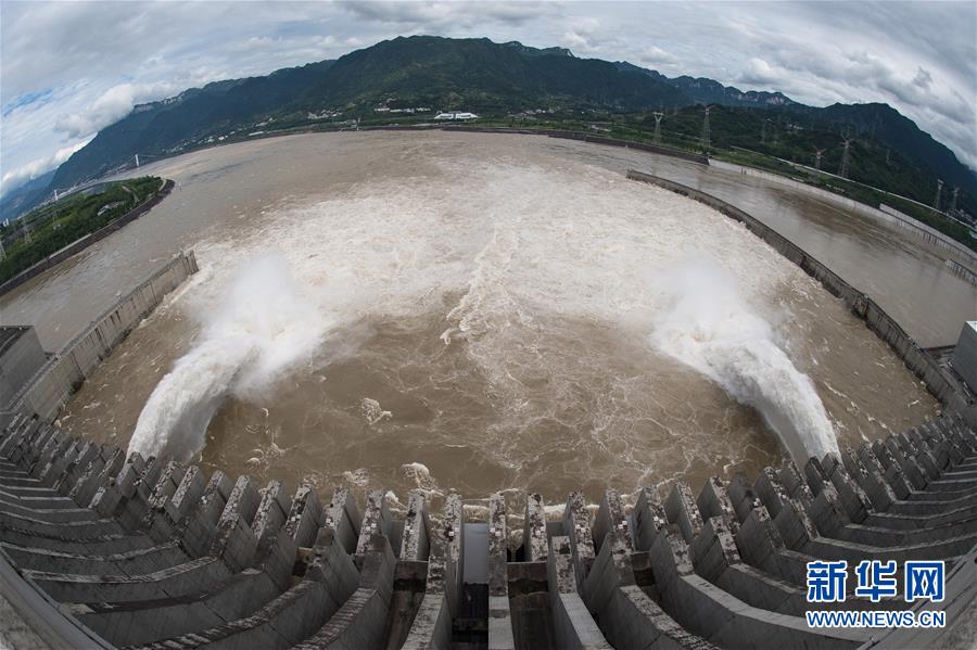 6月29日,三峡枢纽开启泄洪孔泄洪。受长江中上游强降雨影响,进入三峡水库的水量持续增多。为腾出一定库容迎接近期可能到来的洪水,三峡枢纽于6月29日上午开启两个泄洪孔,加大下泄流量。这是三峡枢纽今年首次泄洪。28日14时,三峡水库入库流量达4万立方米/秒,是27日14时的两倍。为应对此轮来水,长江防总要求将三峡水库下泄流量上调至日均3.5万立方米/秒。新华社发(黄善军摄)