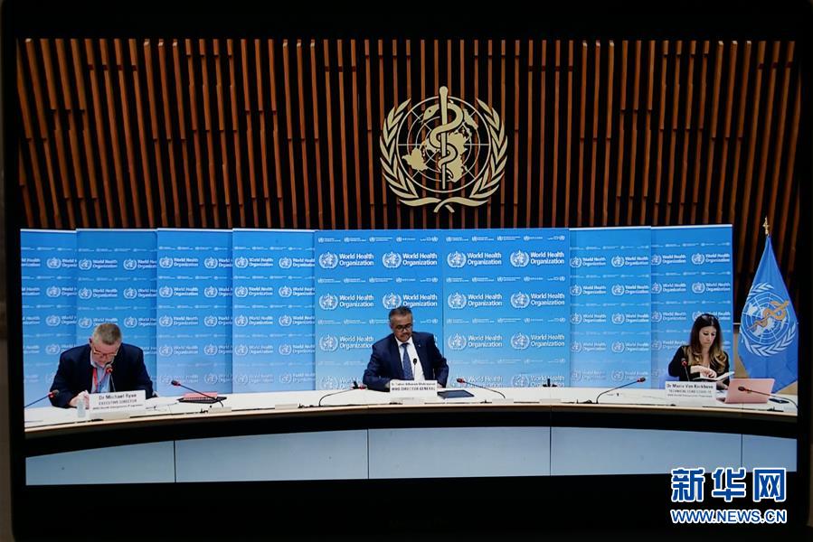 这是6月29日在比利时布鲁塞尔拍摄的世界卫生组织总干事谭德塞(中)在瑞士日内瓦出席线上记者会。新华社记者张铖摄