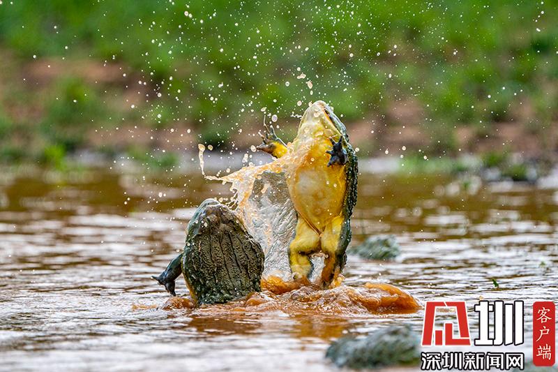 上演“全武行”!非洲雄性牛蛙为争夺雌性伴侣大打出手