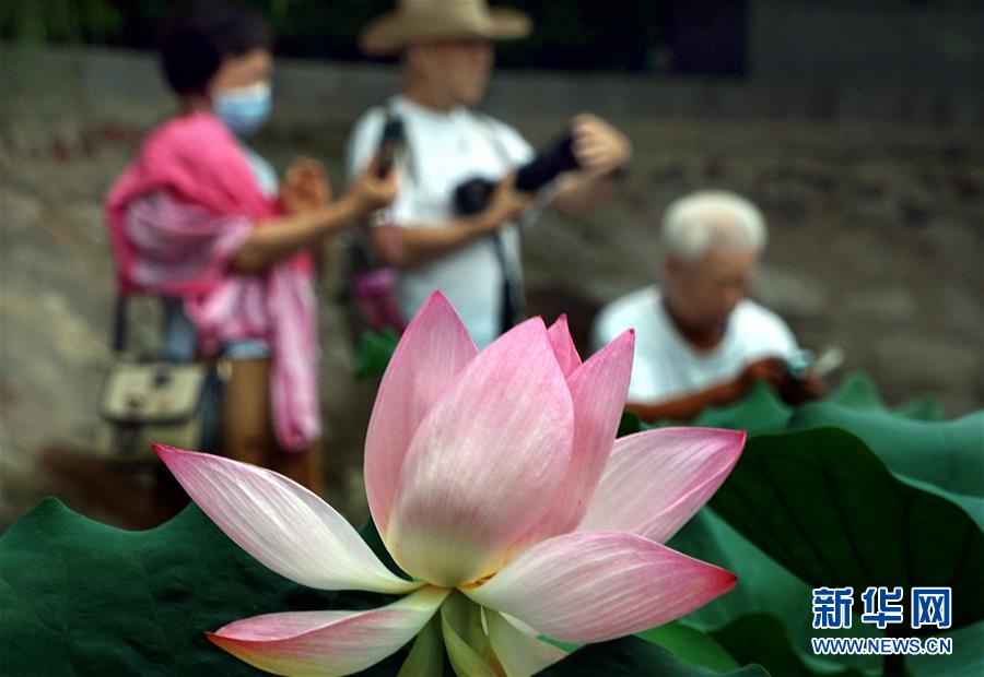 6月30日,市民在河南郑州紫荆山公园内拍摄荷花。新华社记者李安摄