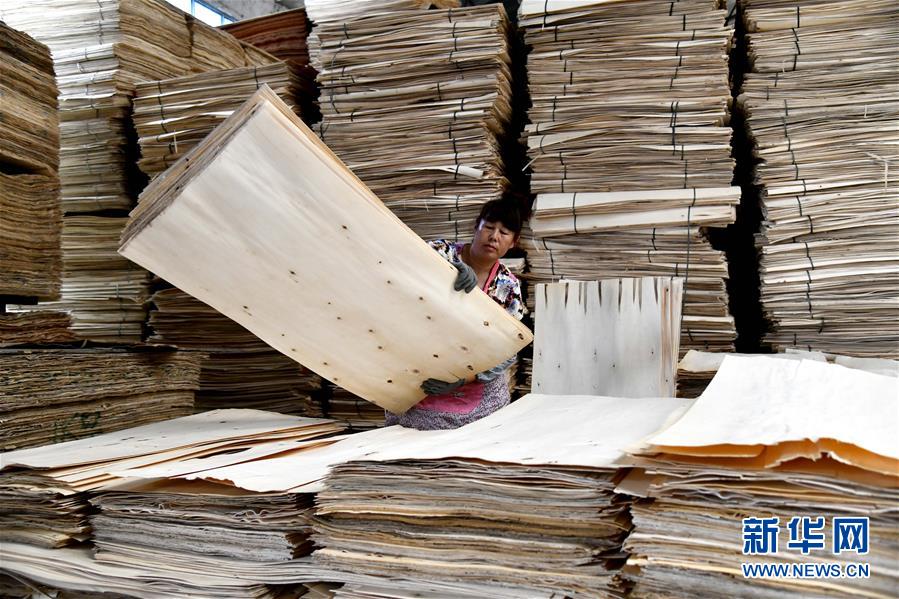 6月30日,在费县坤林木业有限公司,工人在整理板材原料。地处沂蒙革命老区的山东省临沂市费县探沂镇近年来围绕乡村振兴战略,谋划“一镇一业”,以木业产业为抓手,积极引导全镇3136家木业企业进行园区化、集约化、智能化发展,成为远近闻名的“木业特色小镇”。2019年,该镇规模以上工业总产值187亿元,农民人均纯收入2万元左右,木业产业有力助推当地的乡村振兴。新华社记者郭绪雷摄