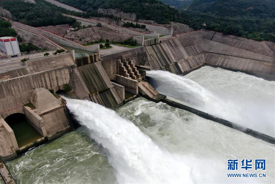 这是7月1日拍摄的黄河小浪底洪水调度运用、水库泄洪的场景(无人机照片)。新华社记者朱祥摄