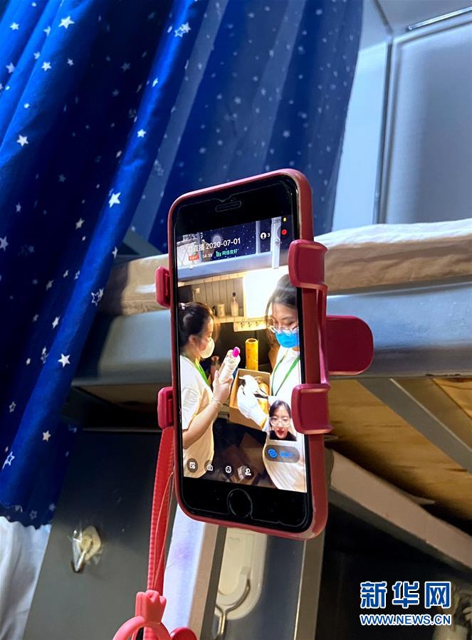 7月1日,在北理工学生宿舍,辅导员通过手机视频方式,核对毕业生的个人物品。6月29日起,北京理工大学教职员工开始为2020届6000多名需要打包的毕业生集中进行行李打包、邮寄和留置物品存放工作。经过提前与毕业生“一对一”沟通,老师们耐心细致地通过手机“直播”打包行李的全过程,与每一个同学认真核对其个人物品,细心收纳摆放、整理密封、搬运寄送,让不能返校的毕业生们安心、放心。新华社记者魏梦佳摄