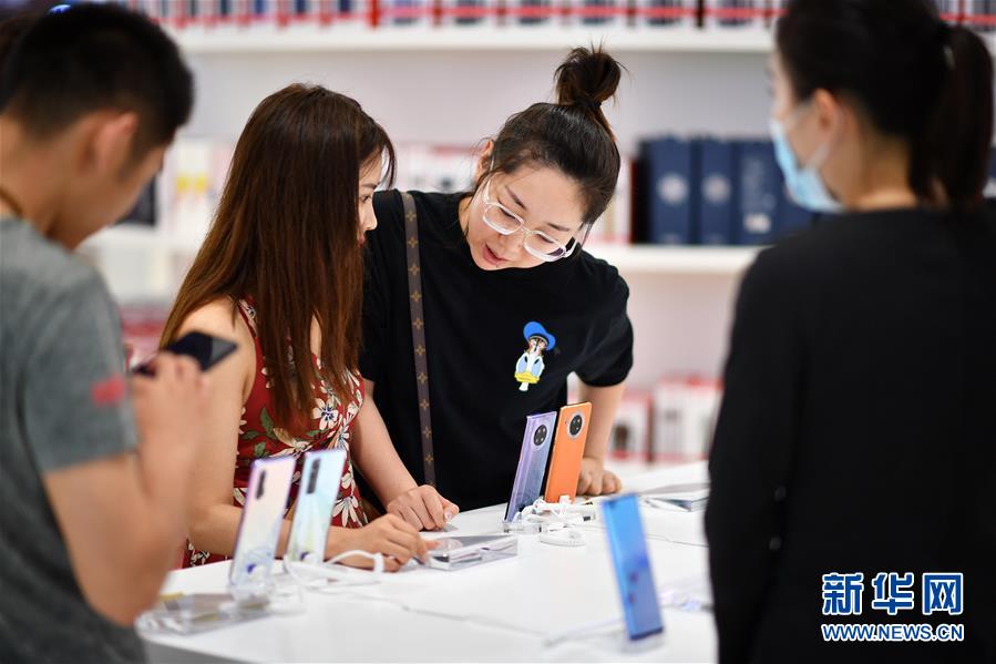 7月1日,顾客在海口日月广场免税店选购手机等电子消费产品。当日,海南开始实施调整后的离岛免税购物政策。海南离岛旅客每年每人免税购物额度提高至10万元,电子消费产品等7类新增商品开售。新华社记者郭程摄