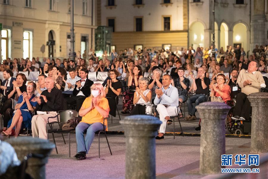 7月1日,观众在斯洛文尼亚首都卢布尔雅那观看艺术节开幕式演出。当日,第68届卢布尔雅那艺术节拉开帷幕。新华社记者彭立军摄