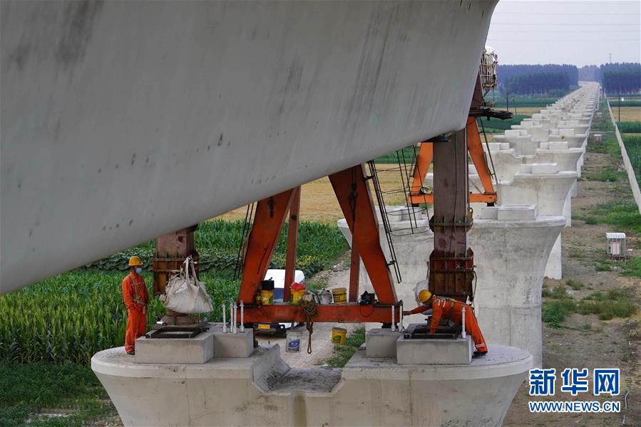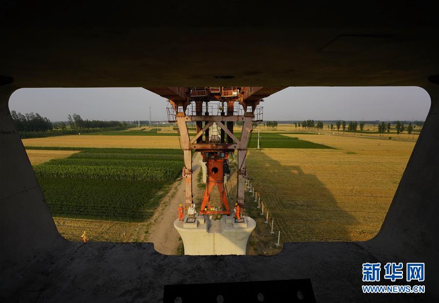 7月2日,工人在京唐城际铁路河北省唐山市丰润段建设工地施工。近日,京(北京)唐(唐山)城际铁路河北省唐山段工程建设按照节点要求稳步推进。据介绍,京唐城际铁路是京津冀地区轨道交通网络的重要组成部分,起点位于北京市通州区的城市副中心站,途经河北省廊坊市、天津市宝坻区,终点位于河北省唐山市唐山站,线路长约148.74千米。新华社记者杨世尧摄