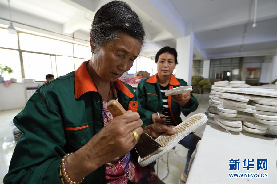 7月2日,临夏县百利布鞋加工农民专业合作社员工在加工布鞋。甘肃省临夏回族自治州临夏县将布鞋加工定为重点扶持发展的产业,采用“政府+公司+贫困户”的产业扶贫模式,由政府主导、企业出资,在贫困村建设“扶贫车间”,吸纳贫困群众从事布鞋加工产业增加收入。截至2019年底,当地布鞋加工企业和加工户遍及近百个行政村,从业人员达到4000多人,累计生产布鞋600多万双,实现销售收入2.32亿元。新华社记者范培珅摄