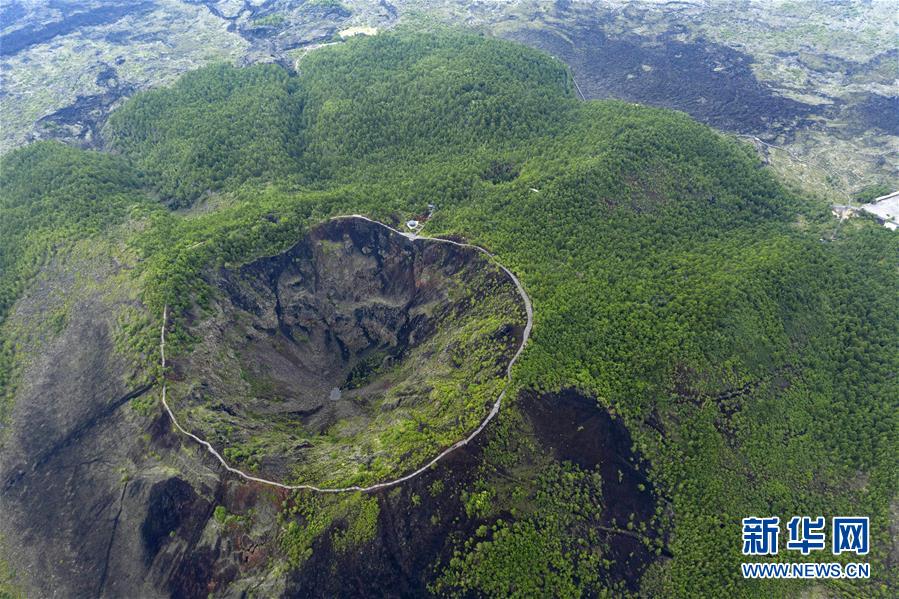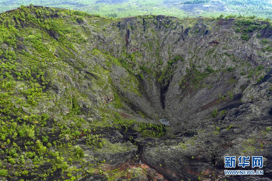 这是7月3日拍摄的五大连池风景区(无人机照片)。 时下,五大连池风景区内植被葱茏,在火山、熔岩台地、火山堰塞湖的映衬下,景色壮美。 五大连池风景区位于黑龙江省黑河市,是较为典型和完整的近代火山喷发遗迹,被喻为“天然的火山博物馆”。 新华社记者 谢剑飞 摄