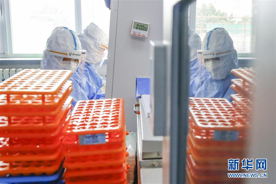 目前,北京中日友好医院检验科新冠核酸检测实验室做到了“人休设备不休”,饱和状态每天能完成约10000份样本的检测工作。