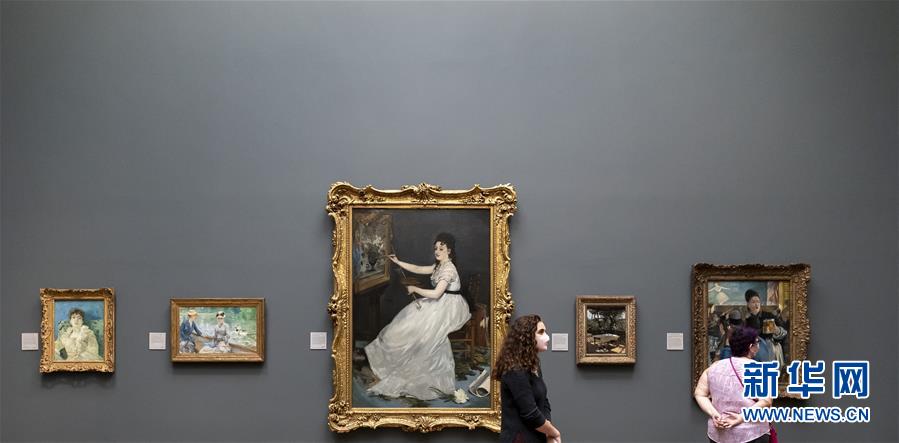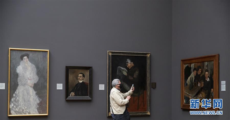 7月4日,参观者佩戴口罩在英国国家美术馆的媒体开放日上参观。新华社记者韩岩摄
