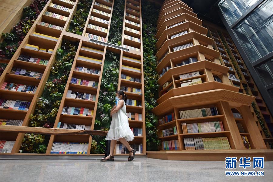 7月5日,在河北省定州市新华书店,一名小朋友从书架前走过。近日,河北省定州市新华书店在做好疫情防控的前提下,开展“乐享图书嘉年华”系列活动,通过举办图书联展、亲子阅读、少儿读物推介等活动,吸引少年儿童走进图书馆,感受书香陪伴的夏天。新华社记者朱旭东摄