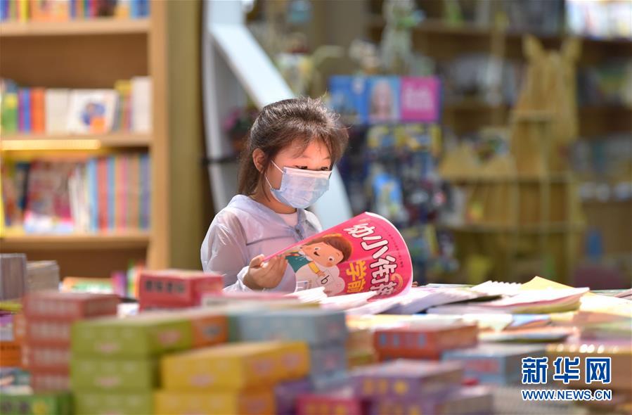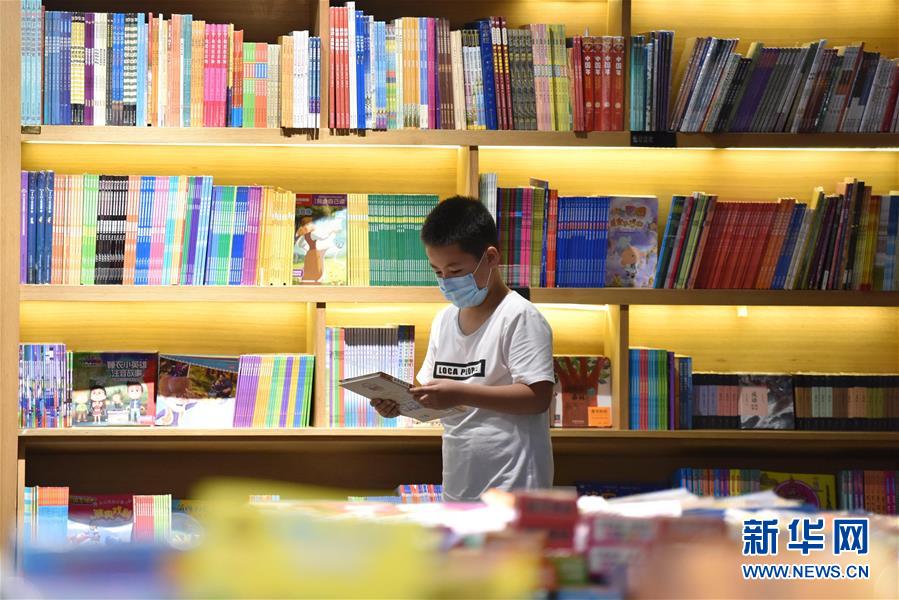 7月5日,小朋友在河北省定州市新华书店阅读图书。近日,河北省定州市新华书店在做好疫情防控的前提下,开展“乐享图书嘉年华”系列活动,通过举办图书联展、亲子阅读、少儿读物推介等活动,吸引少年儿童走进图书馆,感受书香陪伴的夏天。新华社记者朱旭东摄