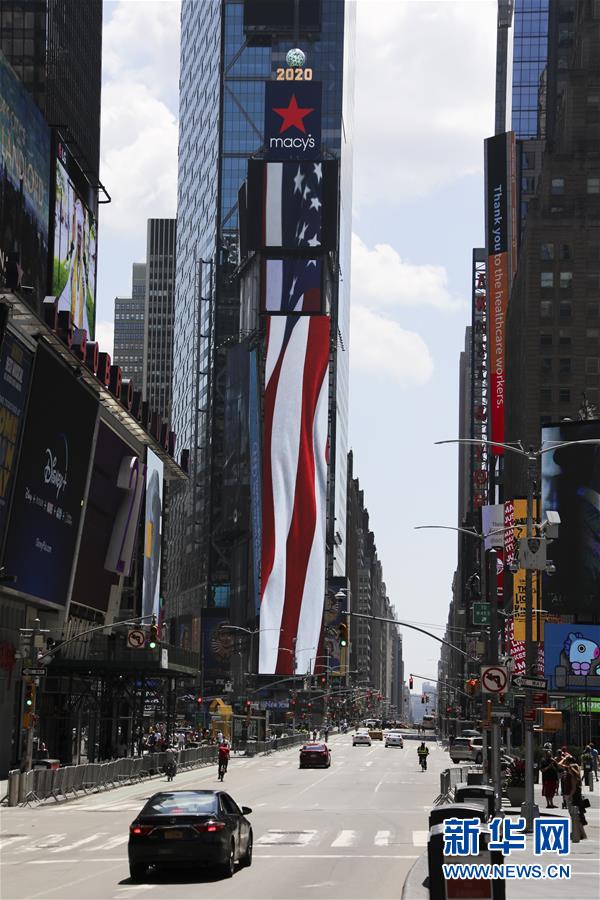 7月4日,美国纽约时报广场上的行人和车辆稀少。当日是美国独立日,美国多地疫情仍面临严峻形势。美国约翰斯·霍普金斯大学实时统计数据显示,美国累计新冠确诊病例4日已超过280万例。新华社记者王迎摄