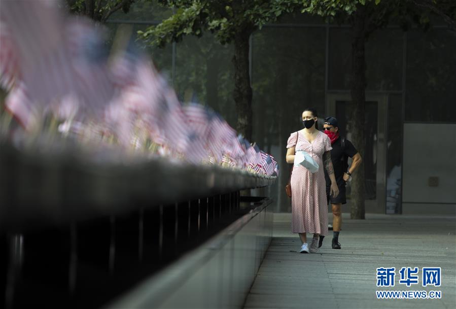 7月4日,参观者在当日重新开放的美国纽约“9·11”世贸中心遗址参观。当日是美国独立日,美国多地疫情仍面临严峻形势。美国约翰斯·霍普金斯大学实时统计数据显示,美国累计新冠确诊病例4日已超过280万例。新华社记者王迎摄