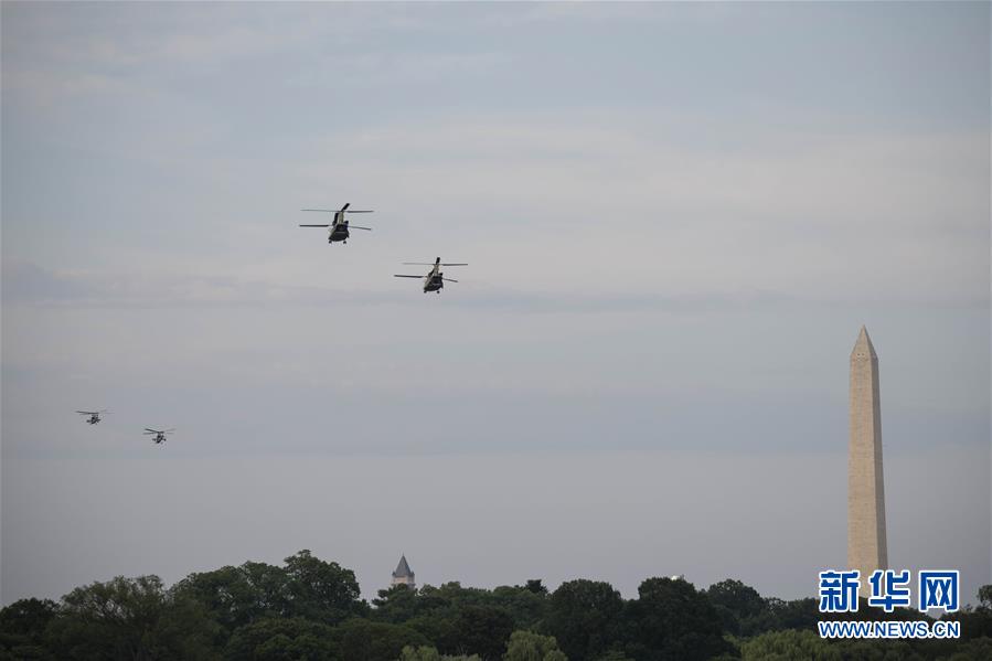 7月4日,直升机在美国华盛顿上空进行飞行表演,庆祝美国独立日。当日是美国独立日,美国多地疫情仍面临严峻形势。美国约翰斯·霍普金斯大学实时统计数据显示,美国累计新冠确诊病例4日已超过280万例。新华社记者刘杰摄