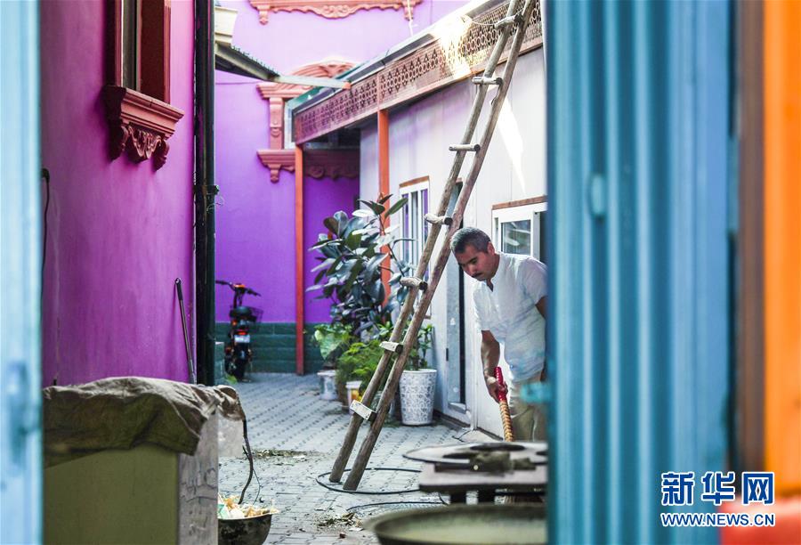 7月5日,在六星街的一家民居内,老人在打扫卫生。新华社记者王菲摄