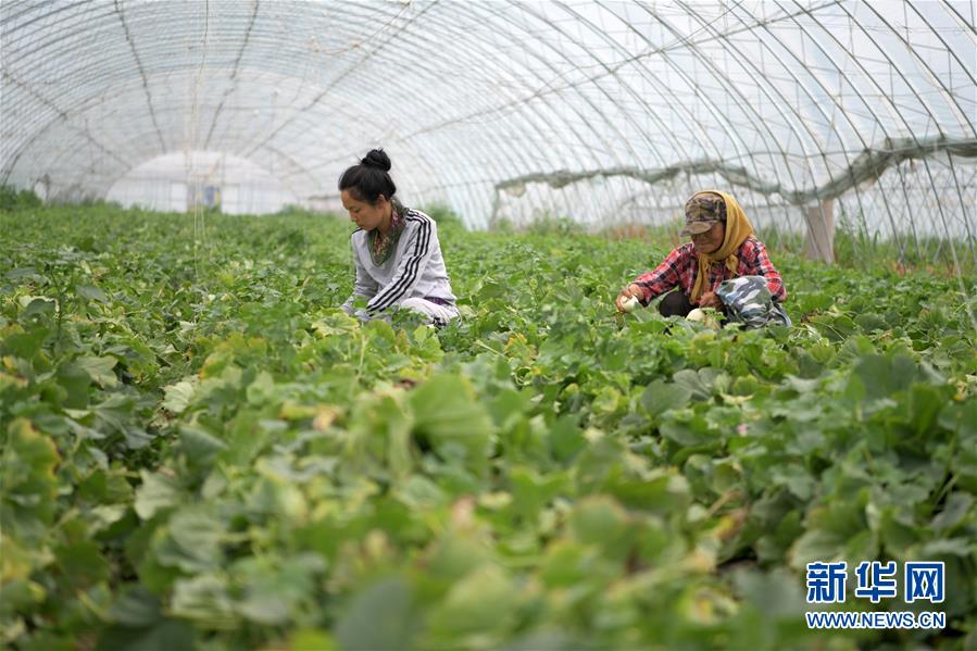 7月5日,村民在黑龙江省肇东市昌五镇昌盛村农业生态观光园扶贫大棚里劳作。黑龙江省肇东市昌五镇昌盛村农业生态观光园占地千余亩,融合了种植采摘、民俗产品展销、旅游观光等项目,方便周边农民就近就业,助力脱贫增收。新华社记者王建威摄