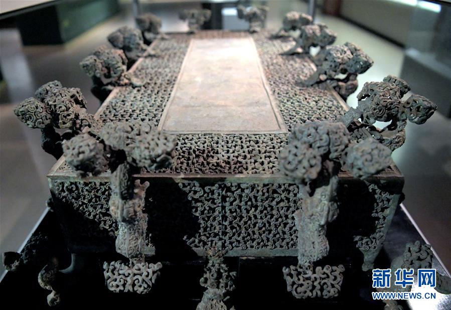 这是河南博物院展厅里的云纹铜禁(2019年11月18日摄)。新华社记者李安摄