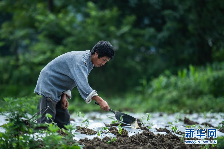 7月6日,贵州省六枝特区九龙街道五龙村村民在田地里劳作。当日是小暑节气,贵州省各地农民不误农时,忙碌在田间地头。新华社记者陶亮摄