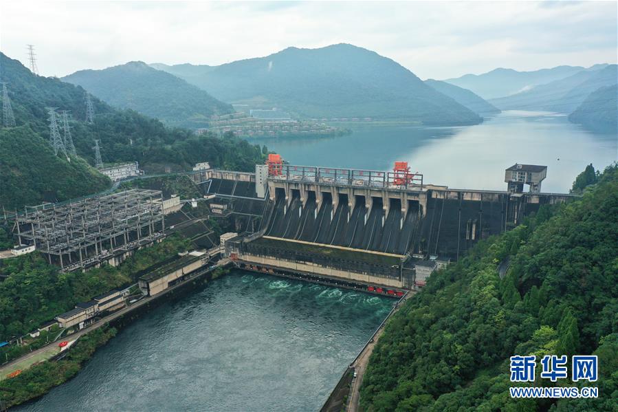 7月6日拍摄的新安江水库(无人机照片)。受连续强降雨影响,位于浙江建德的新安江水库水位持续上涨。据浙江省水利厅发布的数据,截至7月6日14时,水库水位上涨至106.54米,超汛限水位0.04米,且仍在上涨中。为确保水库防洪安全、合理利用水资源,新安江水库预计于7月7日开启泄洪闸泄洪。新华社记者翁忻旸摄