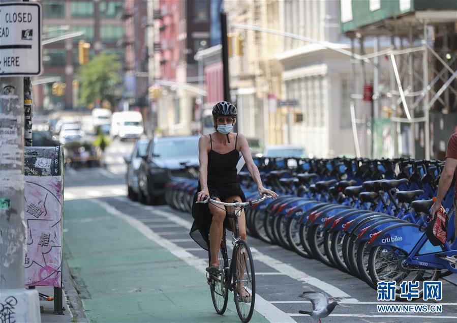 7月6日,一名女子在美国纽约骑行。新华社记者王迎摄