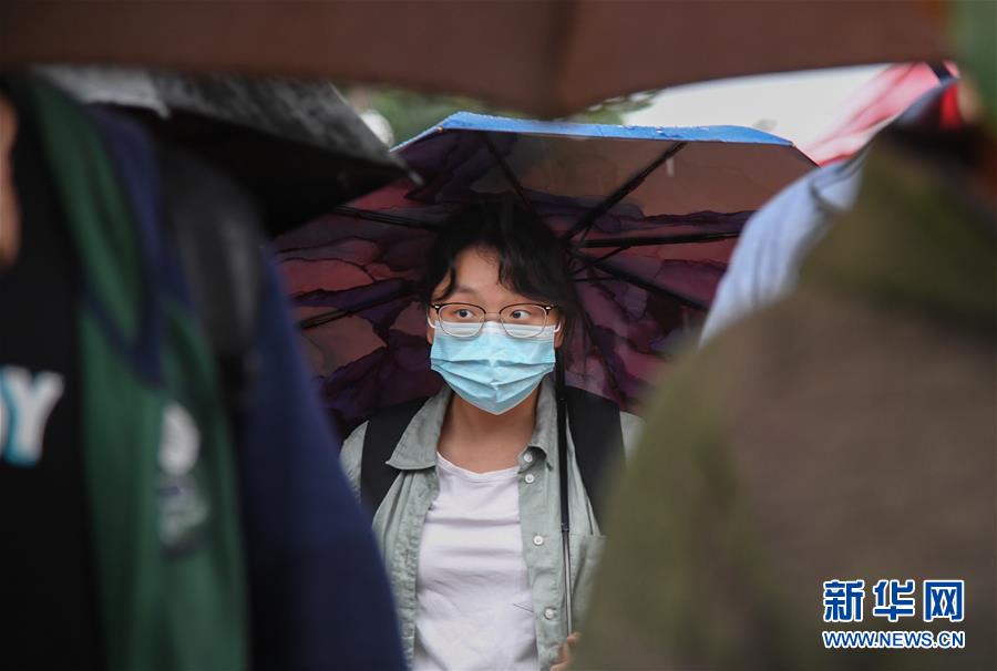 7月7日,在北京大学附属中学考点,考生结束第一场考试后走出考场。当日,2020年高考拉开帷幕。新华社记者任超摄