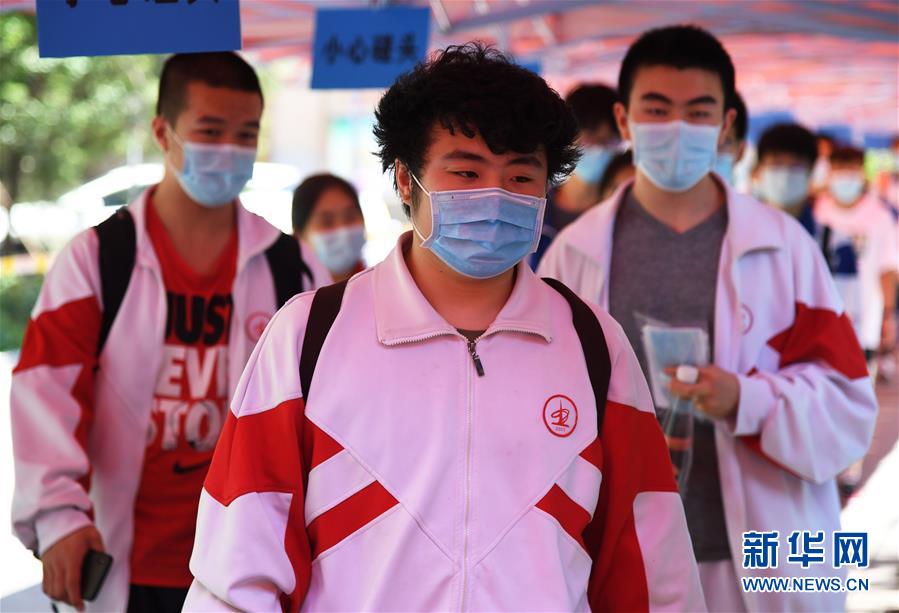 7月7日,在北京大学附属中学考点,考生结束第一场考试后走出考场。当日,2020年高考拉开帷幕。新华社记者任超摄