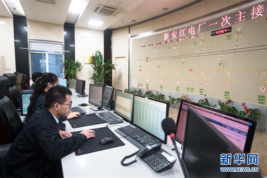 7月7日,新安江电厂工作人员在坝体内部发电机厂房进行数据监视。受持续降水影响,浙江新安江水库水位持续快速上升。继当日10时开启3孔、12时开启5孔泄洪后,新安江水库于16时增加到7孔泄洪。新安江水库是华东地区最大的水库,在钱塘江流域的防洪度汛中起到关键作用。新华社记者翁忻旸摄