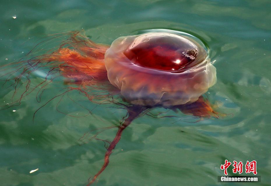 当地时间2020年6月25日,美国马萨诸塞州,美国南部海岸近期出现大量狮鬃水母。图片来源:视觉中国