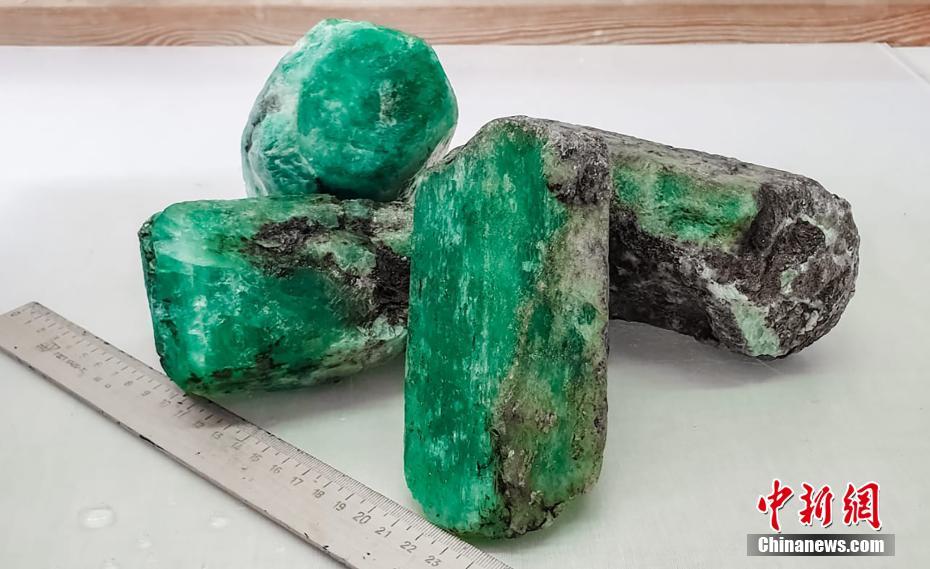 当地时间7月7日,俄罗斯斯维尔德洛夫斯克州,俄罗斯国家技术集团在马林斯克矿区内发现总重量达4.8公斤的4块绿宝石,是最近20年来发现的同类品质中最大的宝石。图片来源:视觉中国