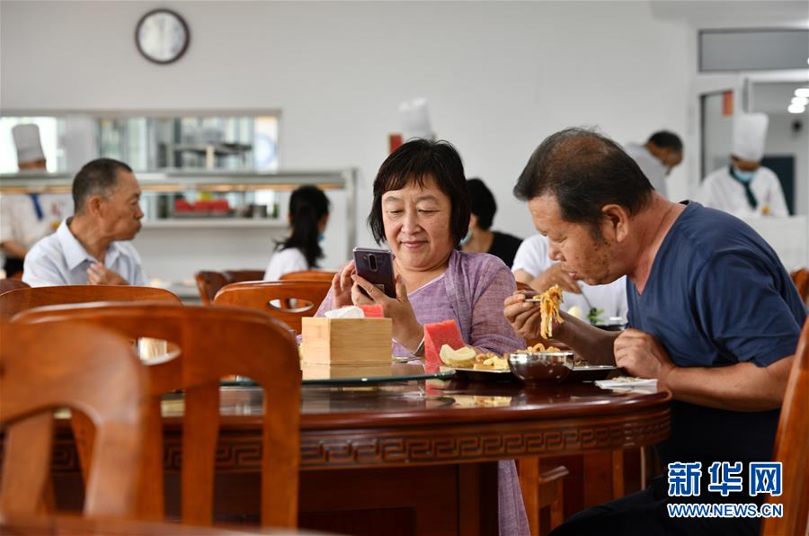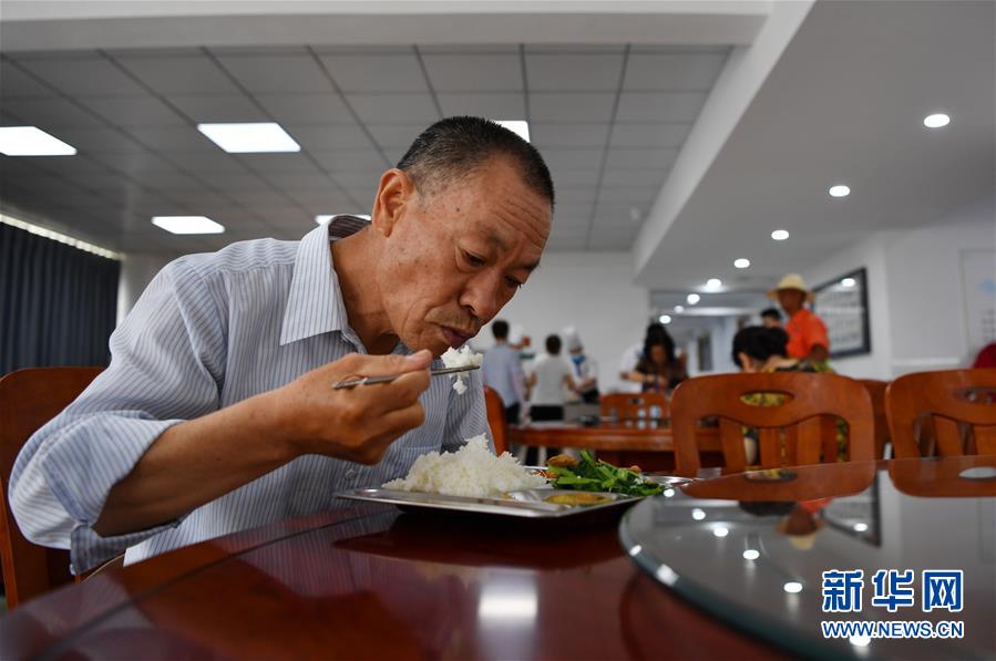 7月7日,老人在付村康养中心(老人家食堂)用餐。新华社记者李然摄