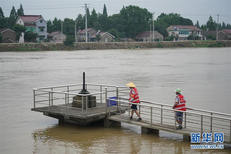 7月9日,在高淳区阳江镇永丰圩,巡堤员在值守点值守。新华社记者季春鹏摄