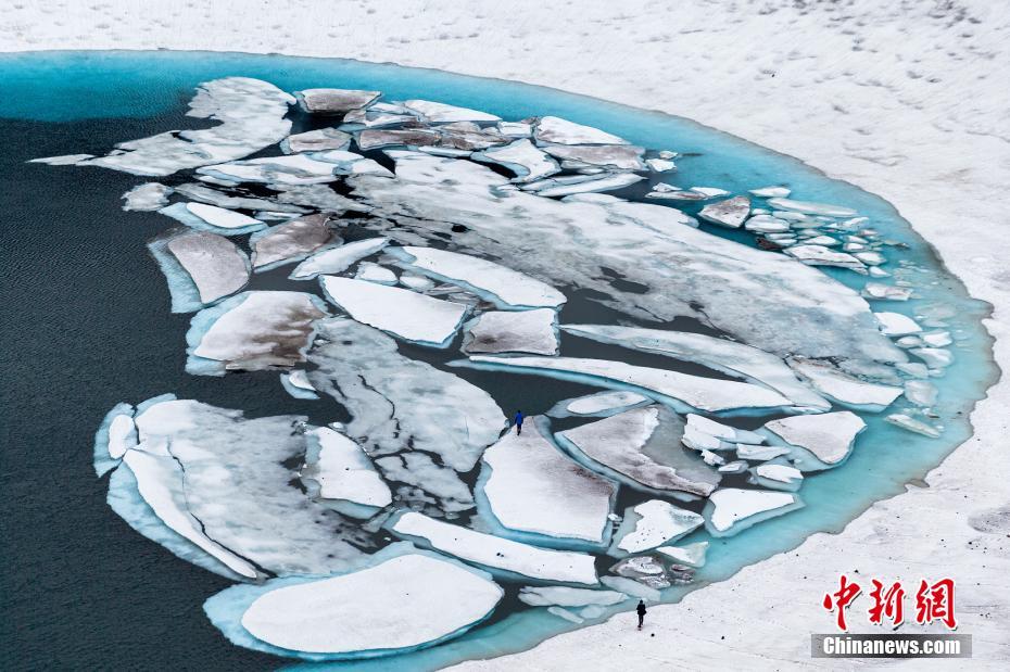 当地时间2020年7月7日,俄罗斯堪察加半岛,Gorely火山附近的Sredinnoye火山湖。这个湖断断续续的,是6月底到8月初融雪形成的。图片来源:视觉中国