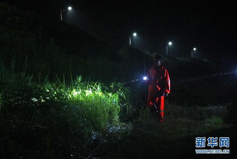 7月9日,邵忠如冒雨夜巡圩堤。新华社记者万象摄