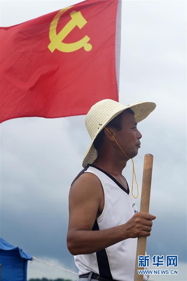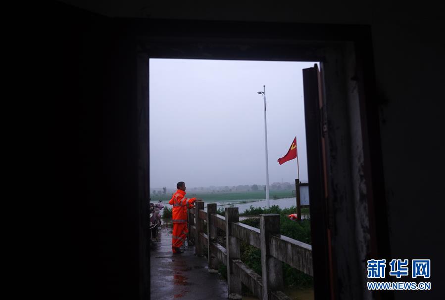 7月9日,邵忠如在圩堤上观察水情。新华社记者万象摄