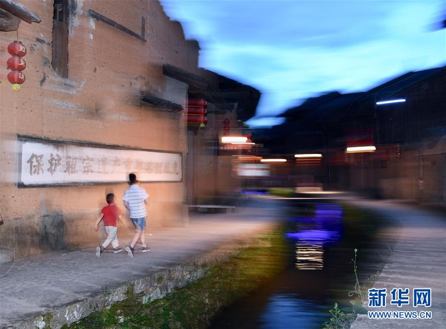 7月3日,两名小朋友从浦源村鲤鱼溪畔走过。新华社记者 姜克红 摄