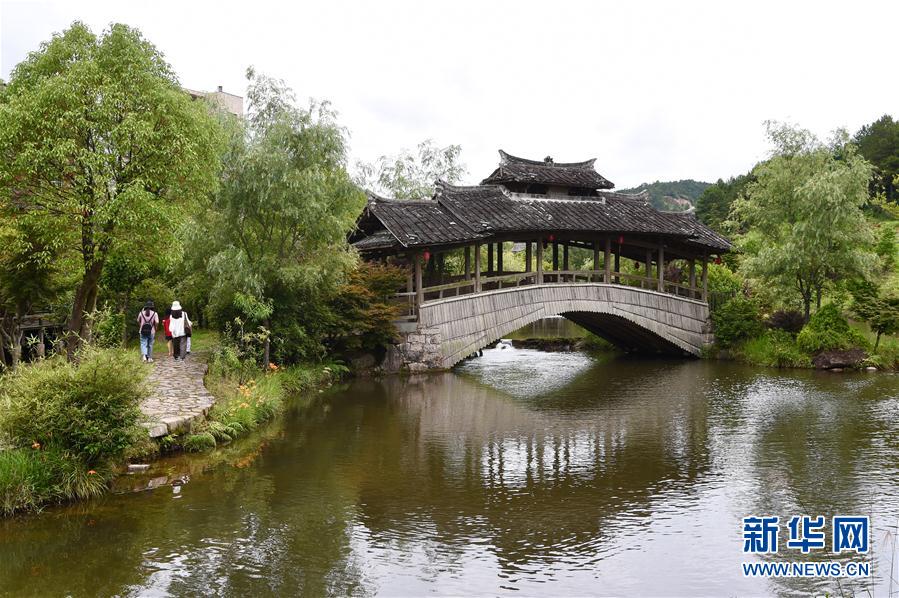 7月3日,游人前往浦源村鲤鱼溪上游的一座传统廊桥参观游览。新华社记者 姜克红 摄