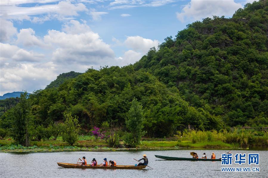 近日,云南省文山壮族苗族自治州丘北县普者黑国家湿地公园山青水秀,风景优美,吸引众多游人前来观光。