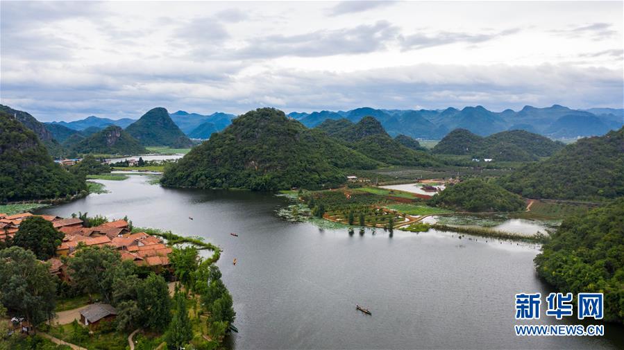 这是7月9日拍摄的普者黑国家湿地公园一景(无人机照片)。新华社记者 胡超 摄