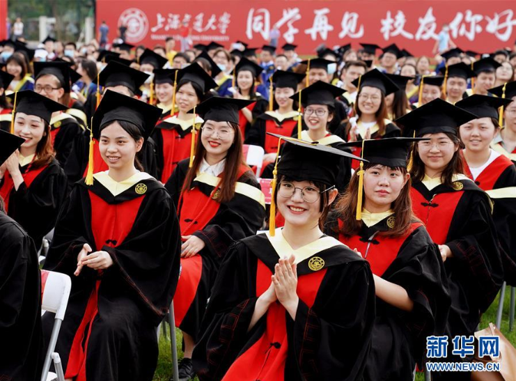 7月12日,毕业生在现场参加上海交通大学2020年毕业典礼。新华社记者 刘颖 摄