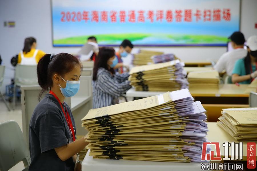 2020年7月13日,在海南师范大学高考评卷场,工作人员仔细拆封考卷并进行扫描入电脑,整个过程井然有序。在评卷现场的入口,除了有武警把守之外,所有工作人员进入到评卷场均有专人使用手柄式金属探测器对其进行安检,并通过身份证识别系统中进行身份识别,方可以进入。考生答题卡由武警24小时值守,并实行严密的视频监控。