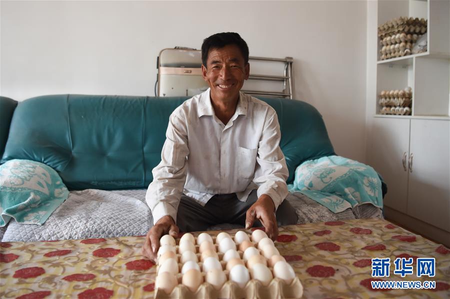 7月14日,高二仁在展示自家的鸡蛋。新华社记者 李志鹏 摄