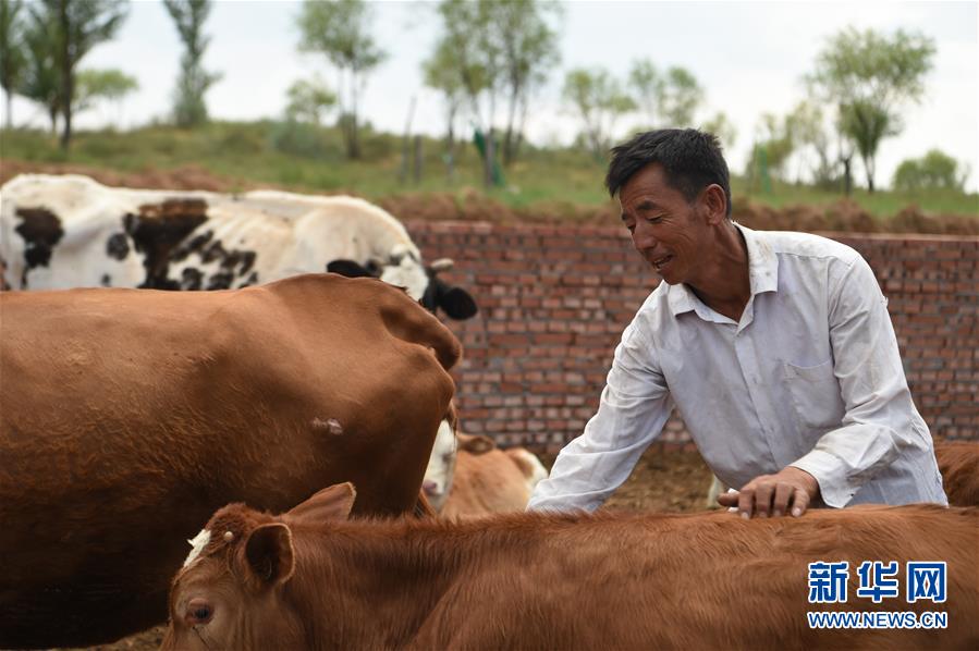 7月14日,高二仁在观察牛的生长情况。新华社记者 李志鹏 摄