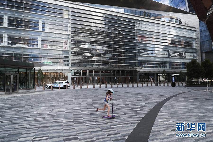 7月14日,在美国纽约一家尚未恢复店内购物的购物中心外,一名女孩在空旷的广场上玩耍。美国约翰斯·霍普金斯大学:截至北京时间15日6时34分,全球新冠确诊病例达13258016例,死亡病例为576752例。美国是全球疫情最严重的国家,确诊病例达3416222例,死亡病例为136319例。新华社记者 王迎 摄