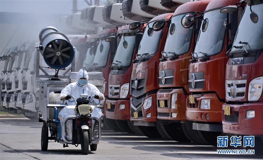 7月14日,北京二商肉类食品集团有限公司员工在对肉类运输车辆停靠区域进行防疫消毒。北京二商肉类食品集团有限公司是保障北京肉类市场供应的主要企业之一。新冠肺炎疫情以来,企业严格实施北京市、农业农村部和中国肉类协会的防疫要求,对进入厂区的人员、车辆以及原料采购、屠宰分割、产品加工、贮藏运输、废弃物收集及污水处理等生产环节严格防疫,强调源头把关彻底消毒。目前,集团公司下属多家生猪屠宰加工基地正常运营,保质保量供应北京市场需求。新华社记者 李欣 摄