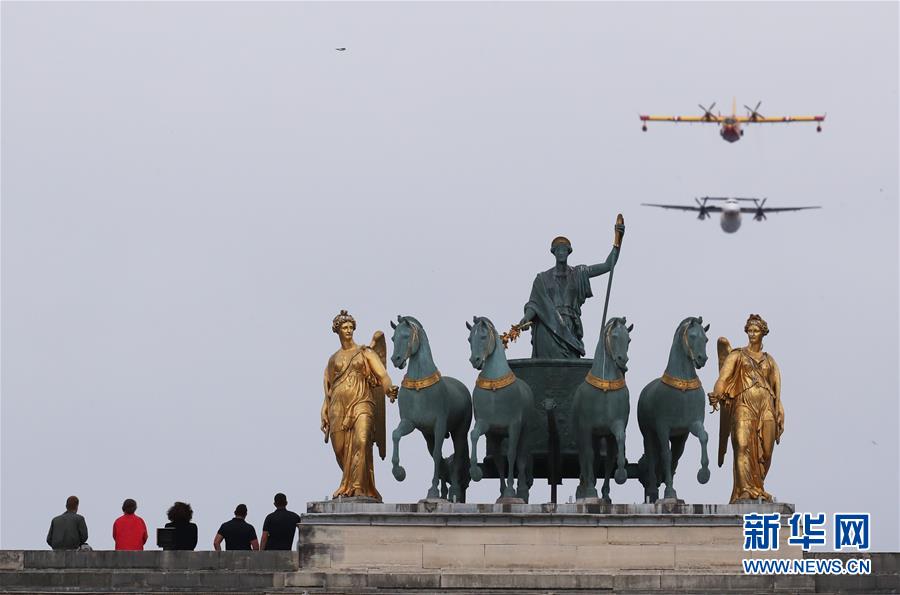7月14日,飞机参加在法国巴黎举行的国庆阅兵式。新华社记者高静摄