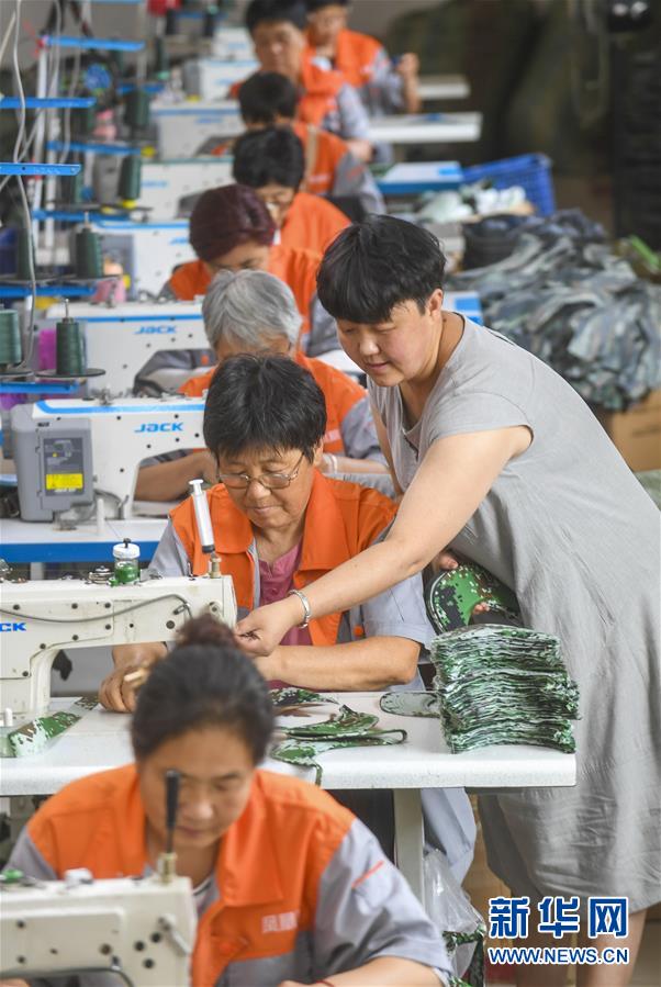 7月16日,在河北省深州市高古庄镇凤凰池村扶贫车间,马京娜示范缝纫技艺。马京娜是河北省深州市高古庄镇凤凰池村的致富能手。在市、乡、村各级部门的大力支持下,马京娜创办扶贫车间,为建档立卡贫困户设立岗位,带领贫困户脱贫增收。目前,马京娜的扶贫车间提供就业岗位30多个。新华社记者李晓果摄