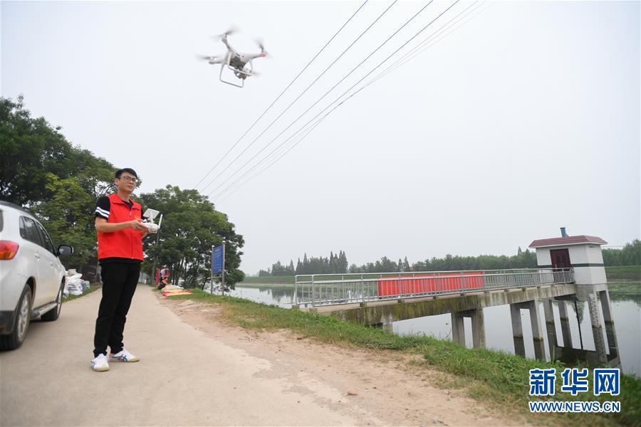 7月17日,在岳阳市华容县治河渡镇新华垸附近水域,工作人员准备利用无人机查看大堤情况。为力争安全度汛,湖南省岳阳市华容县织密人防、物防、技防“三防”网络,加强应急值守和巡查排险工作,采取“以船代仓”“以车代仓”等多种方式灵活储备防汛物资,在险工险段布置摄像头实时监控,利用无人机对人员难以到达的位置进行巡查。新华社记者陈泽国摄